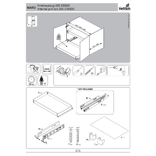 Eigenschaften "Hettich Naro Innenauszug 200 KB900 H120 anthrazit"