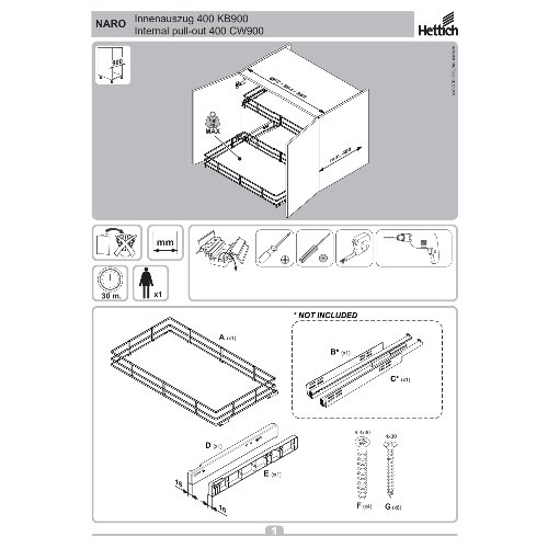 Eigenschaften "Hettich Naro Innenauszug 400 KB900 H120 anthrazit"