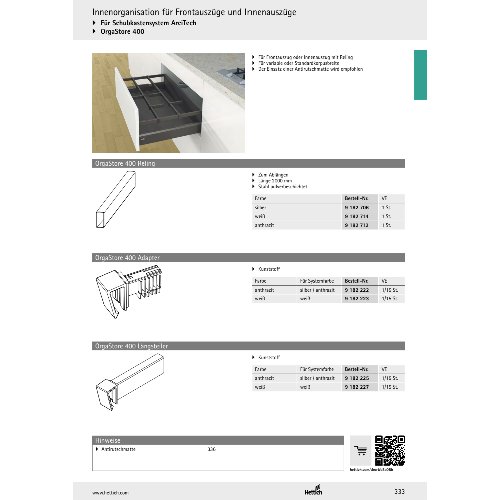 Eigenschaften "Hettich OrgaStore 400 Längsteiler, anthrazit"