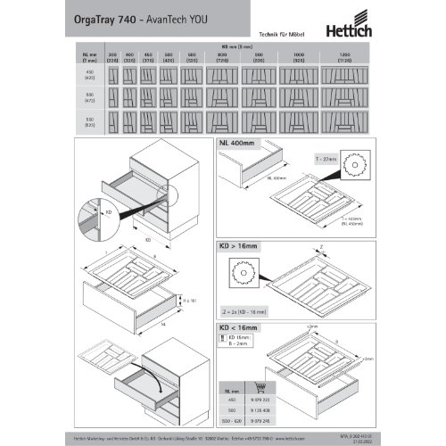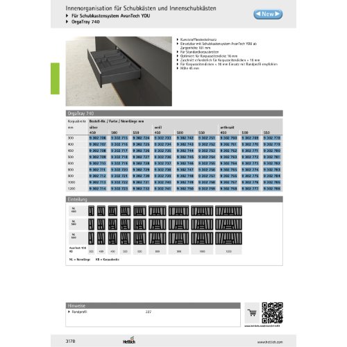 Eigenschaften "Hettich OrgaTray 740, NL 500 x 450 mm, silber"