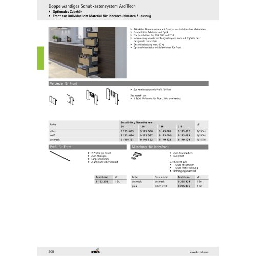 Eigenschaften "Hettich Profil für Front ArciTech, silber"