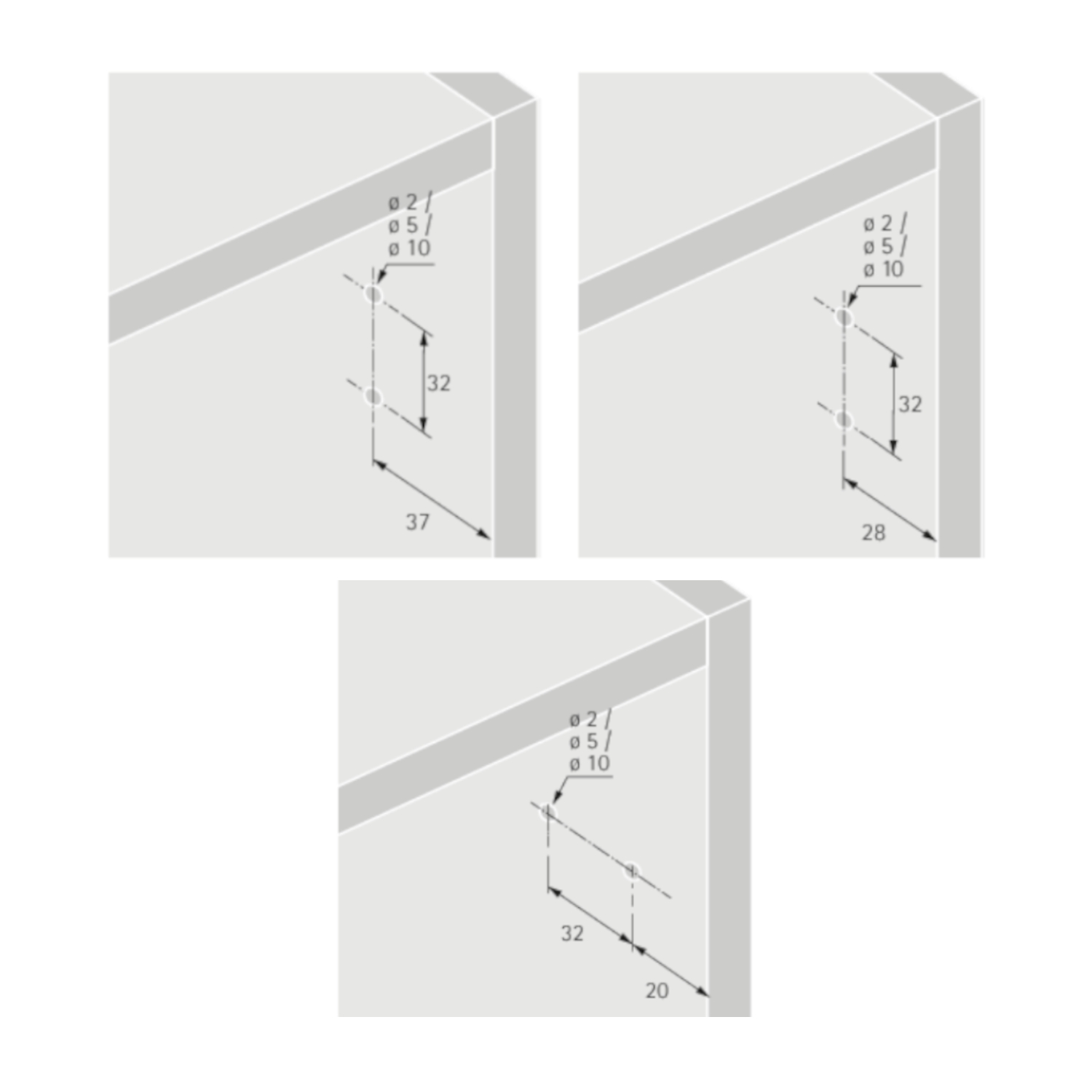 • Zur Anwendung mit gedämpften Automatikscharnieren