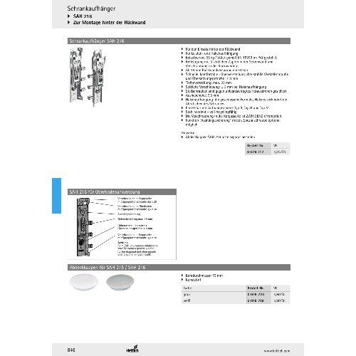 Eigenschaften "Hettich Schrankaufhänger SAH 216 Stahl verzinkt , für Oberbodenbef."