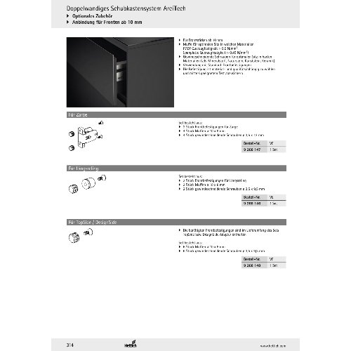 Eigenschaften "Hettich Set Anbindung für dünne Fronten, für Längsreling"