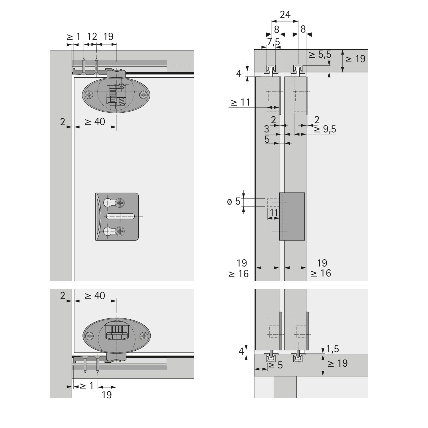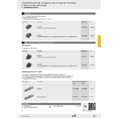 Eigenschaften "Hettich SlideLine 55 Plus Führungsteil zum Anschrauben für Schränke mit 2 einliegenden Türen, Kunststoff"