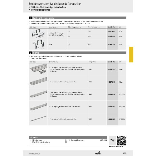 Eigenschaften "Hettich SlideLine M 1-bahniges Laufprofil zum Einpressen, 4000 mm"