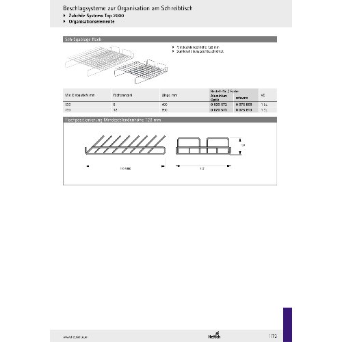 Eigenschaften "Hettich Systema Top Schrägablage flach EB 380/392mm , ET 530mm, 8 Fächer"