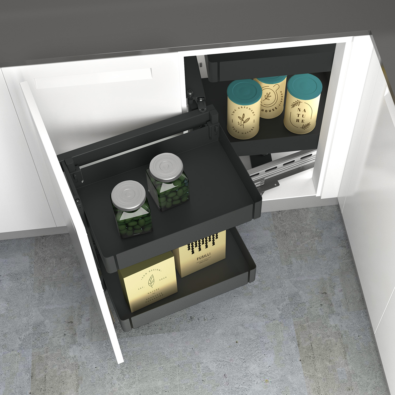 • Für Eckmöbel mit Frontbreite 450, 500 oder 600 mm
