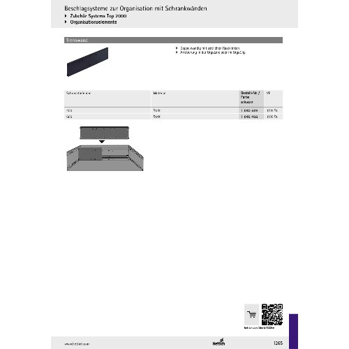 Eigenschaften "Hettich Trennwand, 489 mm, Stahl, schwarz"