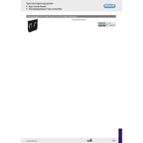 Eigenschaften "Hettich Verriegelungskopf für Stop Control Plus Verrriegelungsstangen"