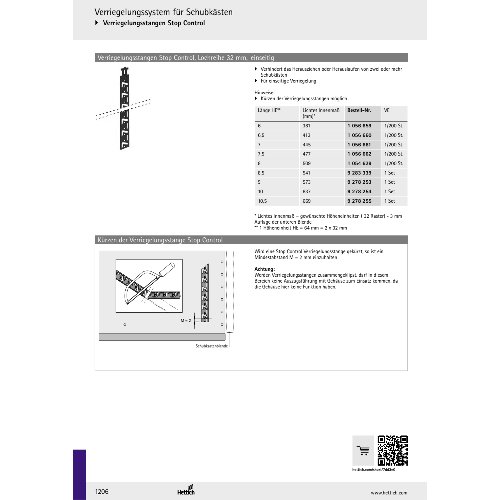 Eigenschaften "Hettich Verriegelungsstange Stop Control, Lochreihe 32 mm, Länge 582 mm, links / rechts"