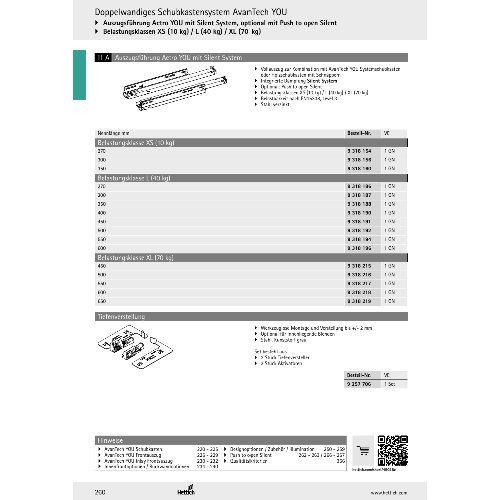 Eigenschaften "Hettich Vollauszug Actro YOU L (40 kg) mit Silent System, Push to open Silent kompatibel, 550 mm, links und rechts"
