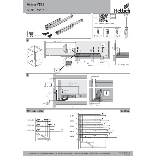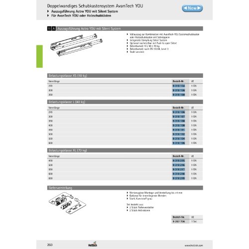 | Variante: | HETTICH Vollauszug Actro YOU XS (10 kg) mit Silent System, Push to open Silent kompatibel, 300 mm, links und rechts |