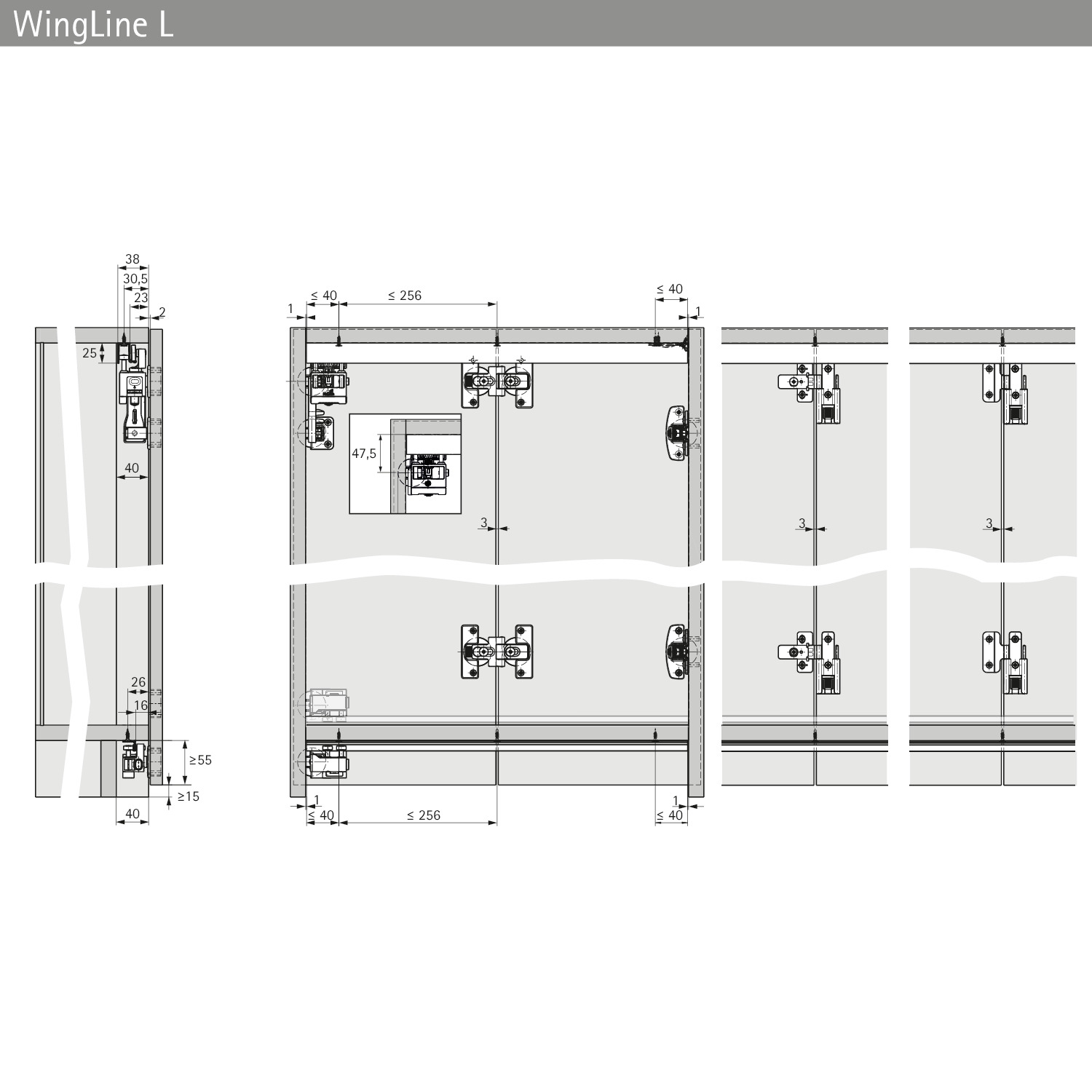 Produktinformationen "Hettich WingLine L, Beschlagset leicht ohne untere Führung, 12 kg, weiß, links, mit Schließautomatik"