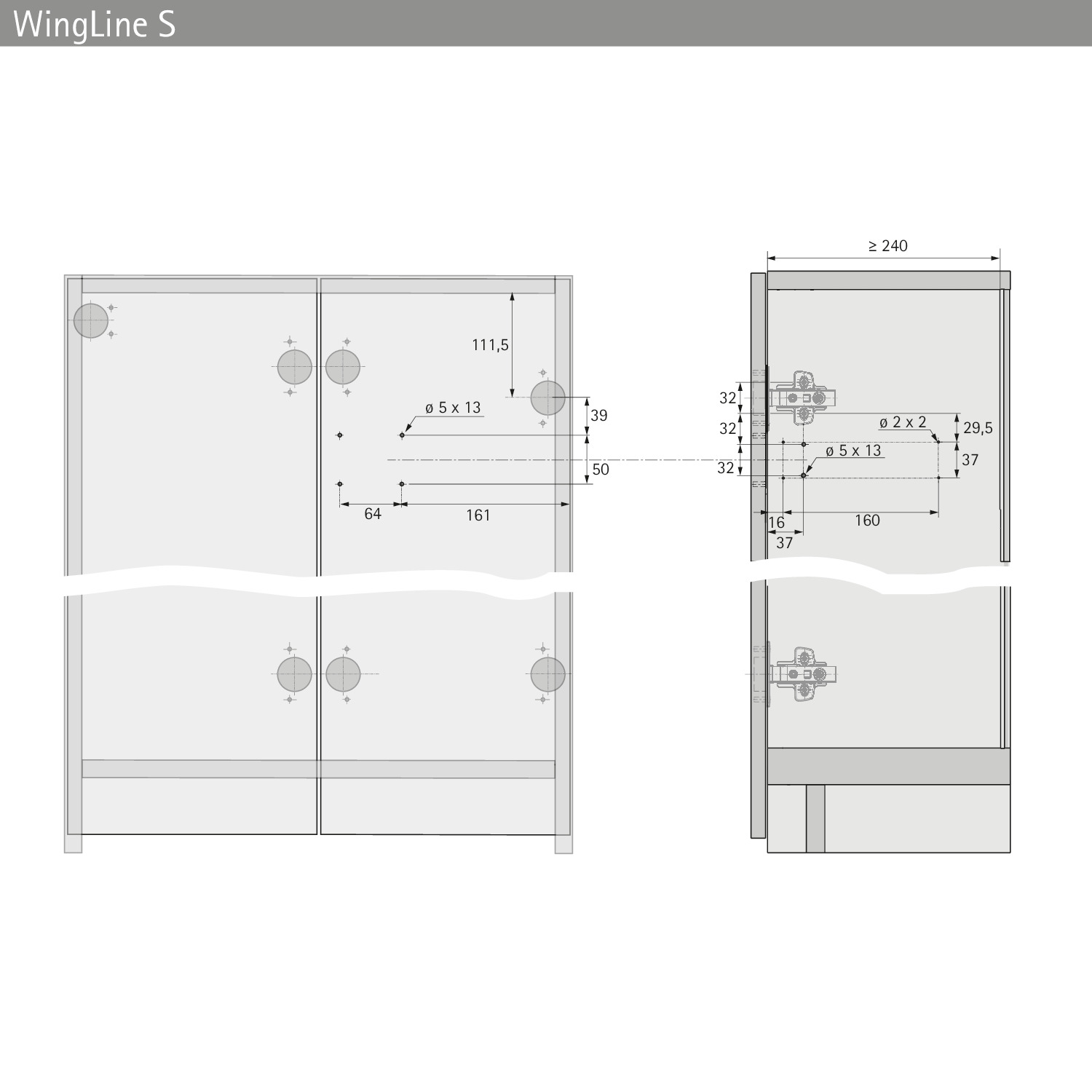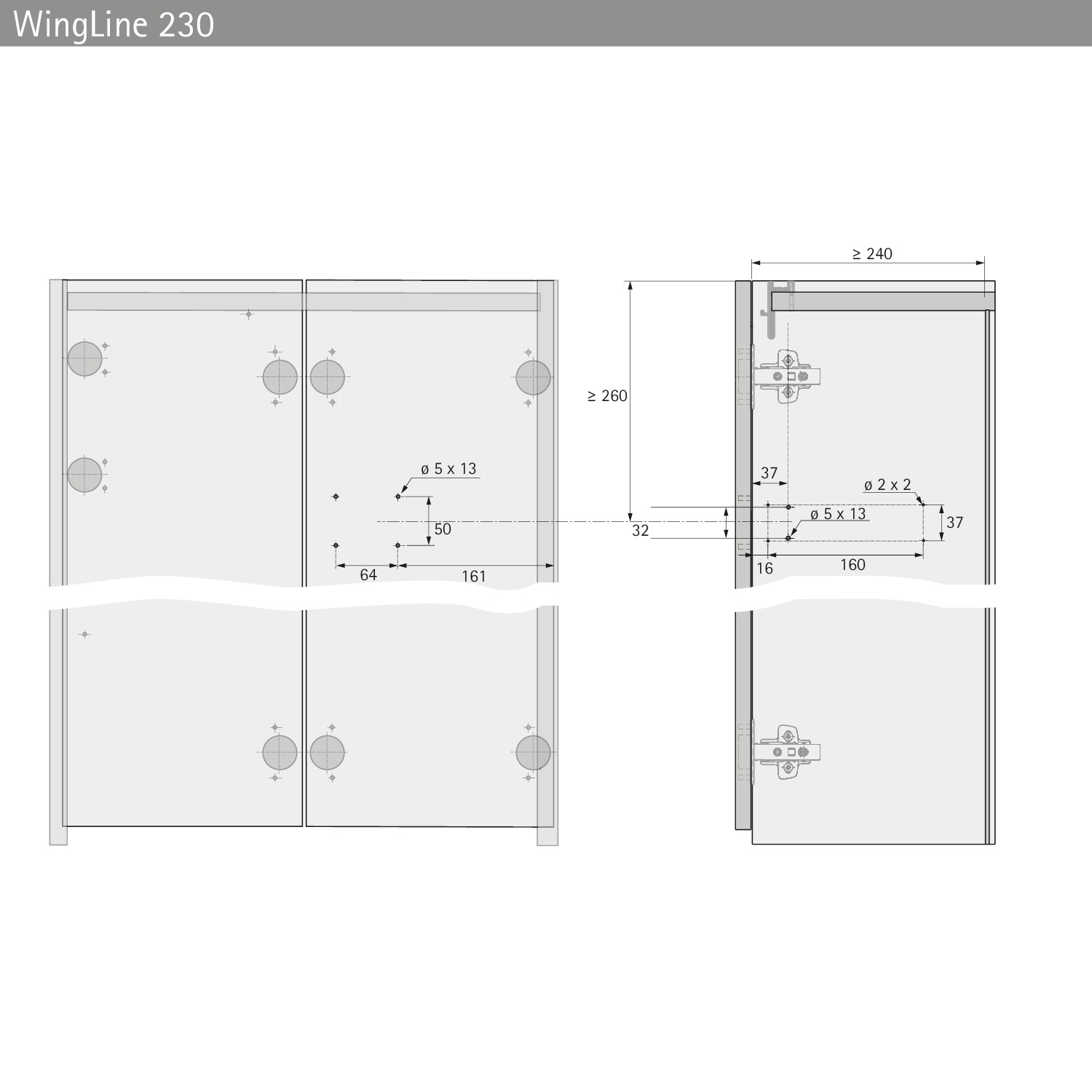 Produktinformationen "Hettich WingLine L/S/230, Set Pull to move Silent, schwer, weiß"