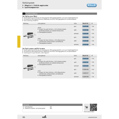 Eigenschaften "Hettich WingLine L/S/230, Set Pull to move Silent, schwer, weiß"
