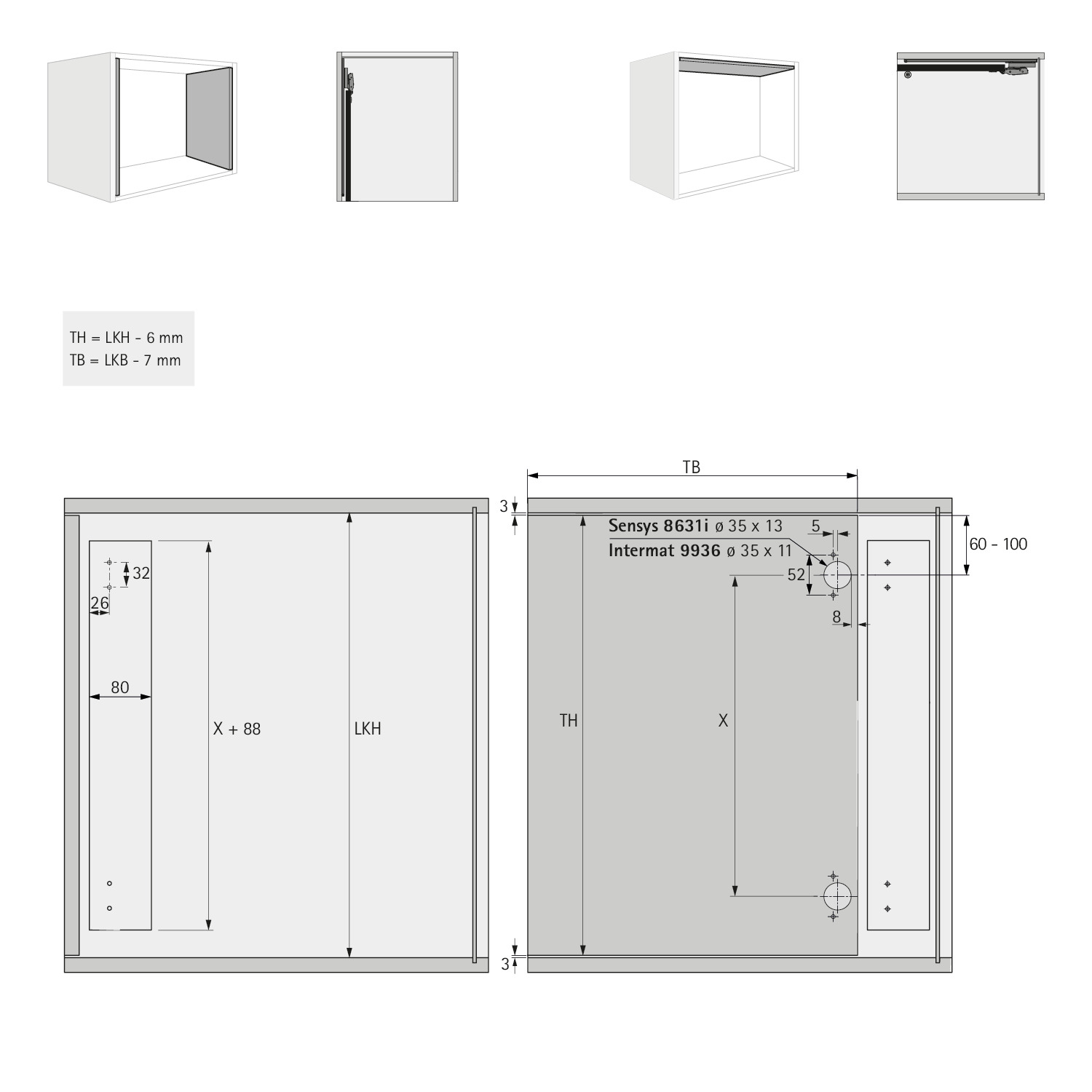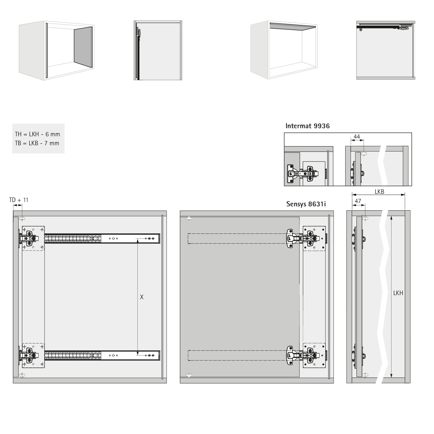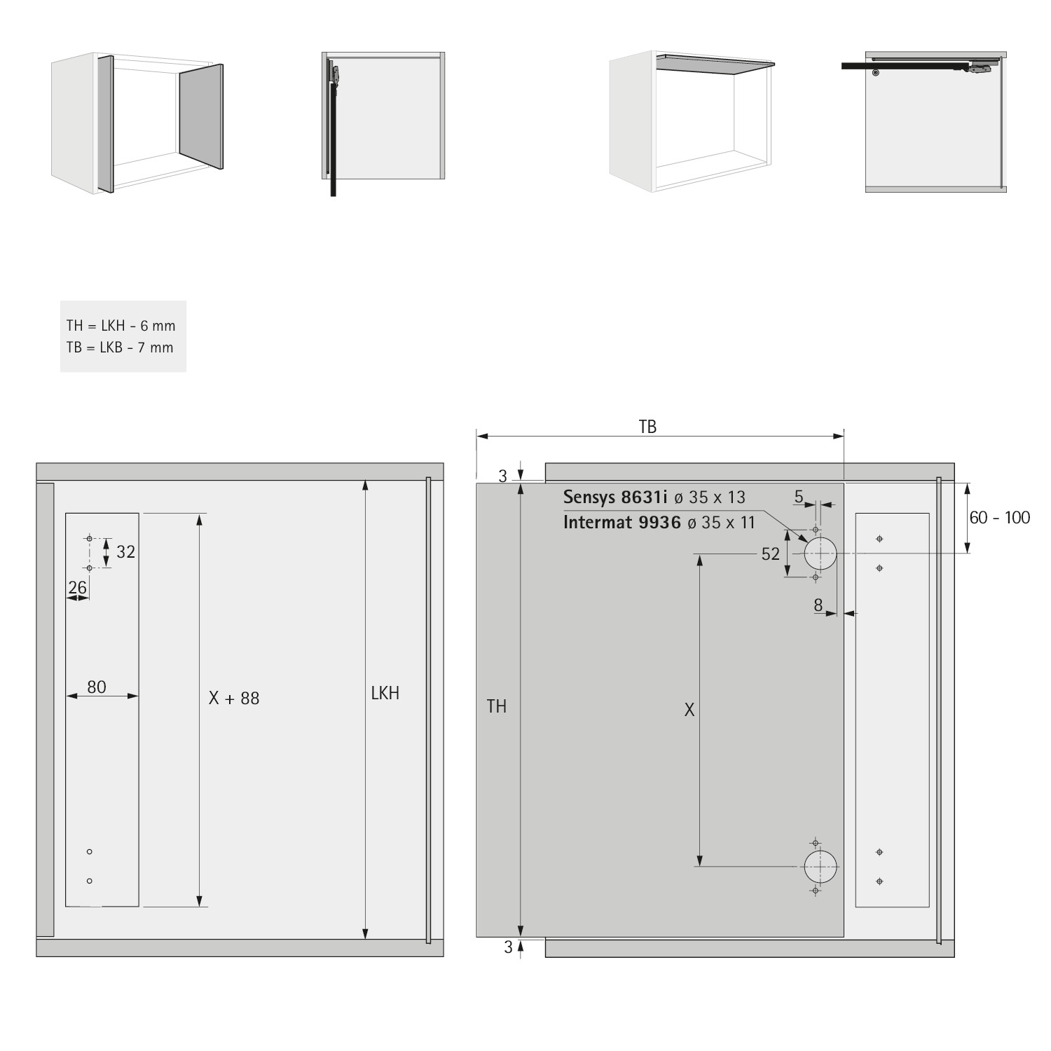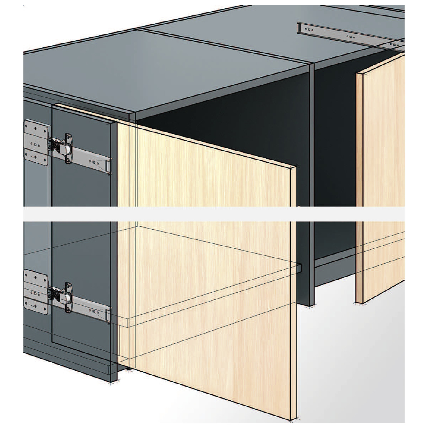 • Mit dem KA 5740 Zubehör-Set, können auch Klappen nach dem Öffnen oben in den Schrankkorpus geschoben werden