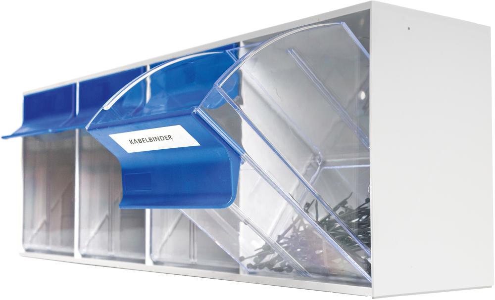 Mit diesen Klarsicht-Magazinen ist eine übersichtliche und nahezu staubfreie Aufbewahrung von Kleinteilen und Zubehör möglich.