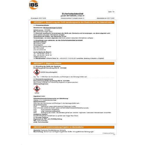 Eigenschaften "IBS Spezialreiniger 25 l Typ EL/Extra"
