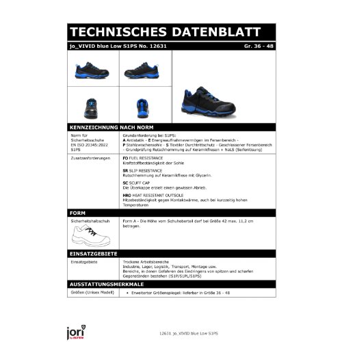 Eigenschaften "JORI Sicherheitshalbschuh jo_VIVID blue Low S1PS, Gr. 47"