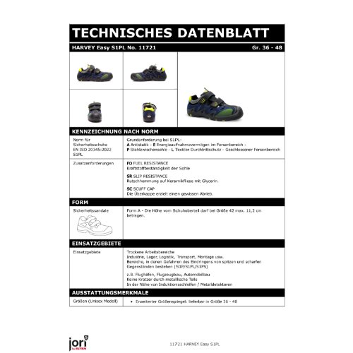 Eigenschaften "JORI Sicherheitssandale HARVEY Easy S1PL, Gr. 47"