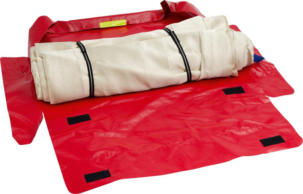 Zur Aufbewahrung und zum Transport von Brandbegrenzungsdecken, Tragegriffe oben und Grifflaschen an den Seiten.