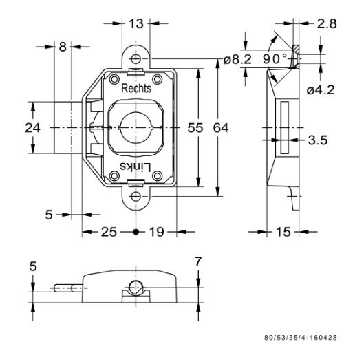 | Anschlagrichtung: | oben/unten, rechts/links |