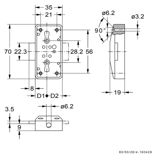 • Schlüssel 0305, Bart 8 x 6 mm, 15- und 20-mm-Dorn in einem Schloss