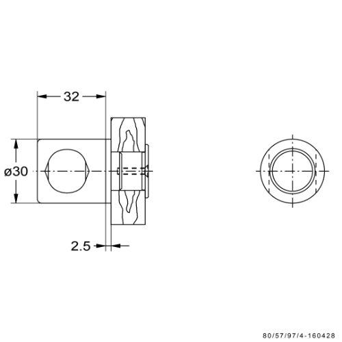 3555 Griffolive feststehend, ø 30 mm, 2Griffmulden, Metall vernickelt, für ø 18 mmBohrung, für 10 - 26 mm Materialstärke