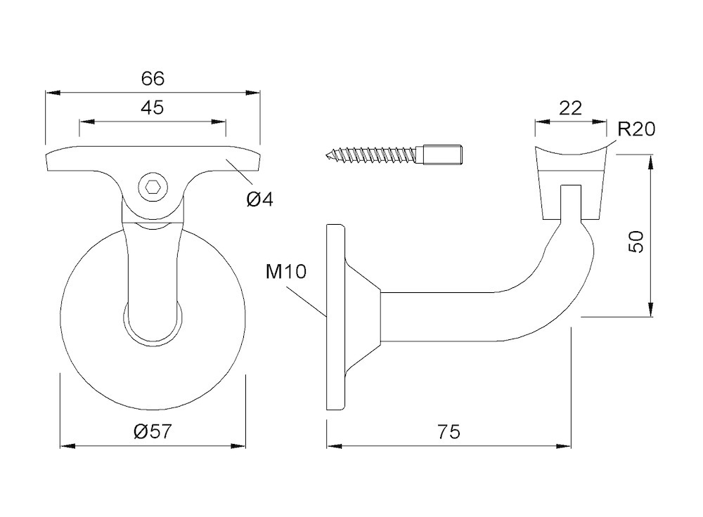 KWS 4511 Handlaufstütze gewölbte Auflage, zum Andübeln