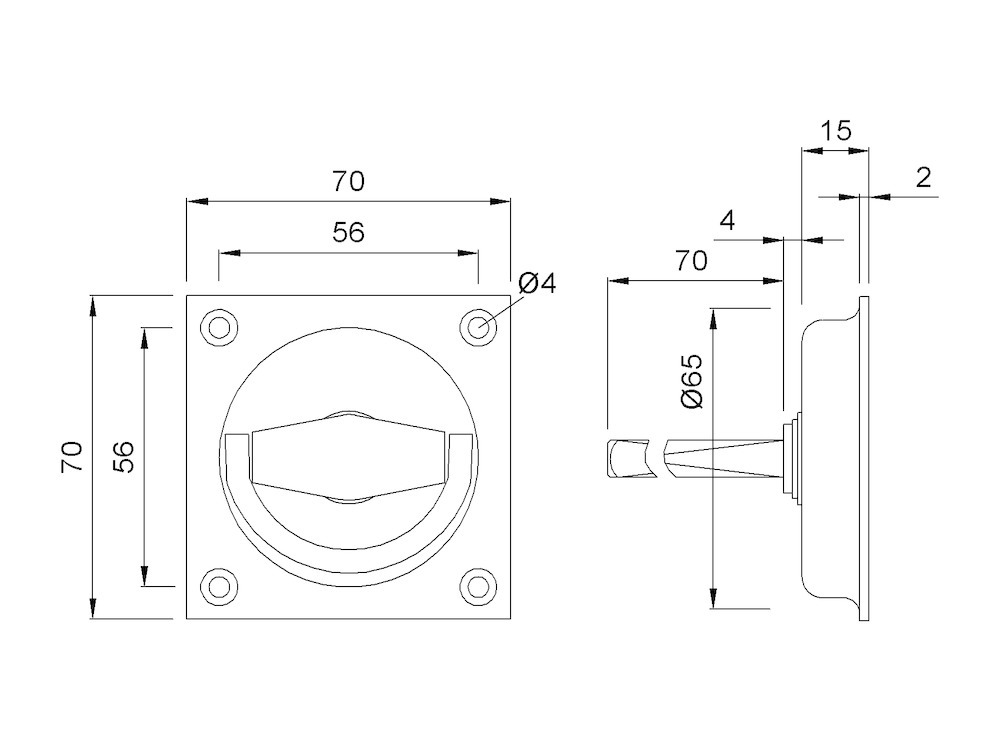 KWS 5114 Muschelgriff 70 x 70 mm, 7 mm Stiftteil, Klappring