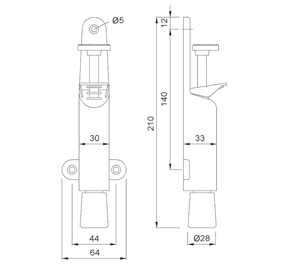 KWS Türfeststeller 1026,Hub 30mm, silberfarben, einbrennlack.