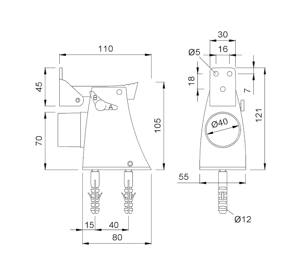 KWS 1110 Türfeststeller Fanghaken, gefedert, mit Ausschalthebel