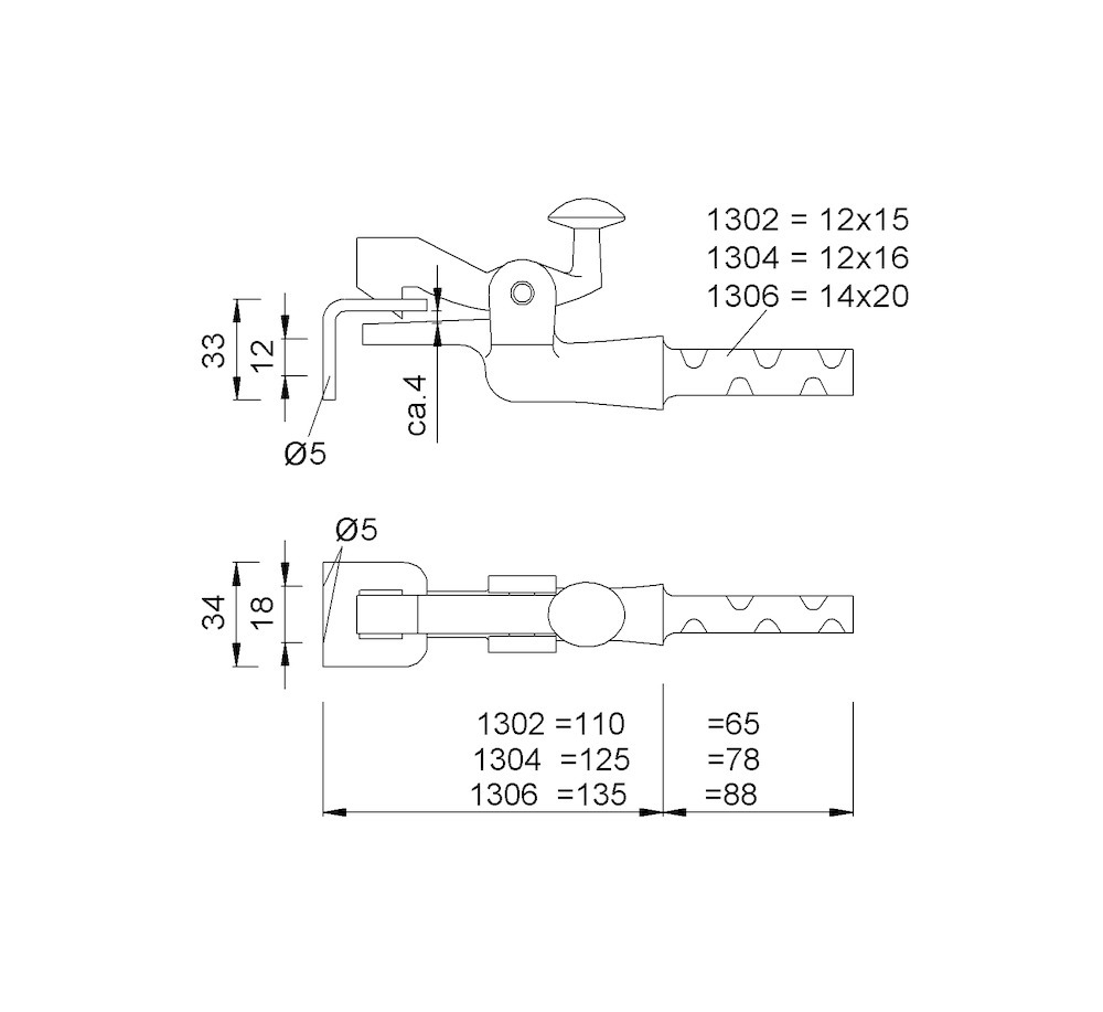 KWS Türfeststeller 1304, schwarz, einbrennlack.