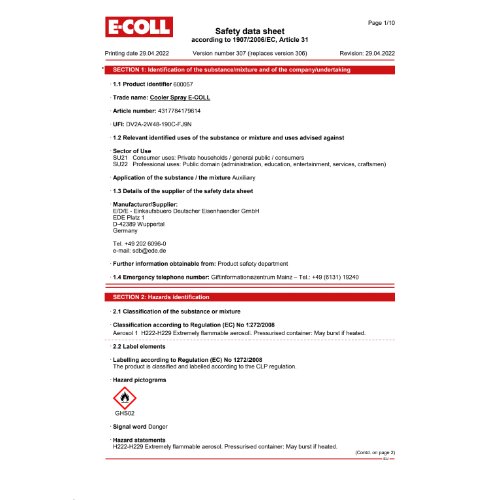 EUH018: Kann bei Verwendung explosionsfähige/entzündbare Dampf/Luft-Gemische bilden.