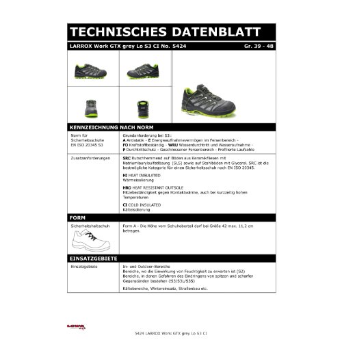 | Laufsohle: | GUMMI/PU Sohle LARROX Work mit MONOWRAP®-Technologie |