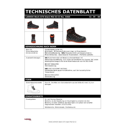 | Laufsohle: | GUMMI/PU Sohle LARROX Work mit MONOWRAP®-Technologie |