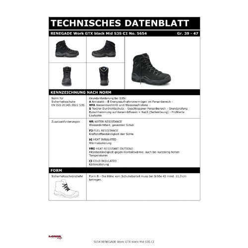 | Variante: | LOWA Sicherheitsschnürstiefel RENEGADE Work GTX black Mid S3S CI, Gr. 45 |