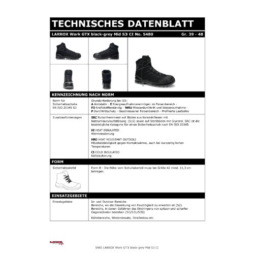 | Laufsohle: | GUMMI/PU Sohle LARROX Work mit MONOWRAP®-Technologie |
