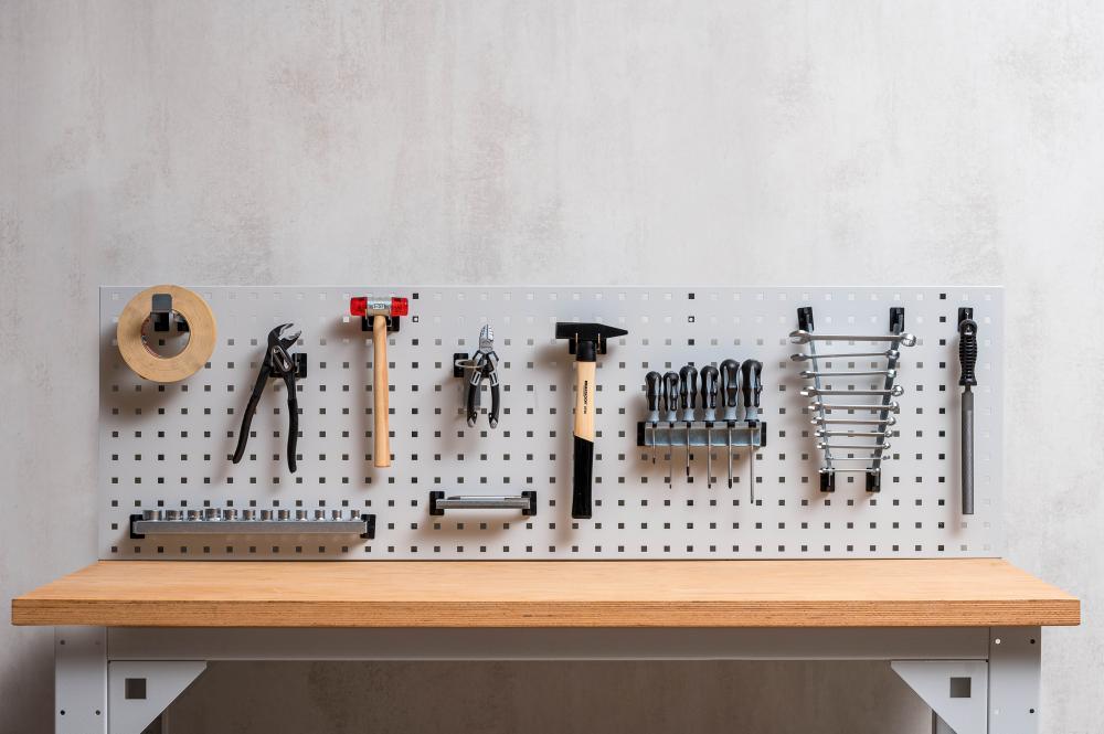 • 1 Lochplatte 1500x450 mm mit 2 Werkbankhalterungen