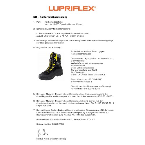 | Variante: | Lupriflex Schnittschutzstiefel Class 1 Sportive Hunter Winter Gr. 45 |