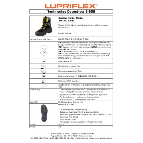Eigenschaften "Lupriflex Schnittschutzstiefel Class 1 Sportive Hunter Winter Gr. 45"