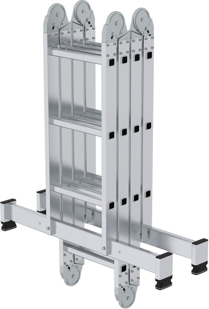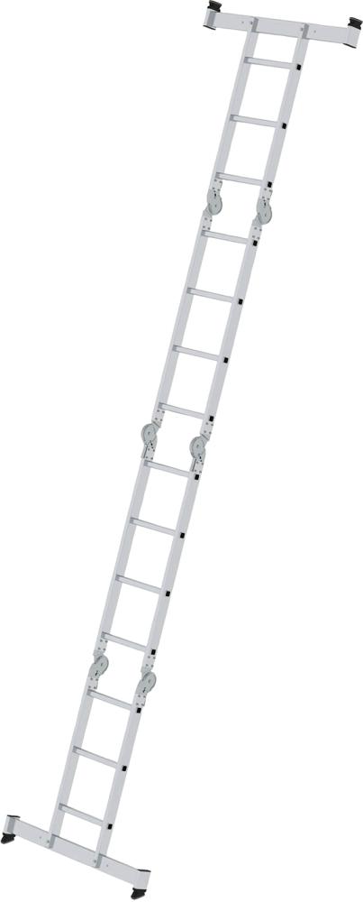 Die 4-teilige Vielzweckleiter ist universell als Anlege- und Stehleiter sowie als Arbeitsbühne einsetzbar.