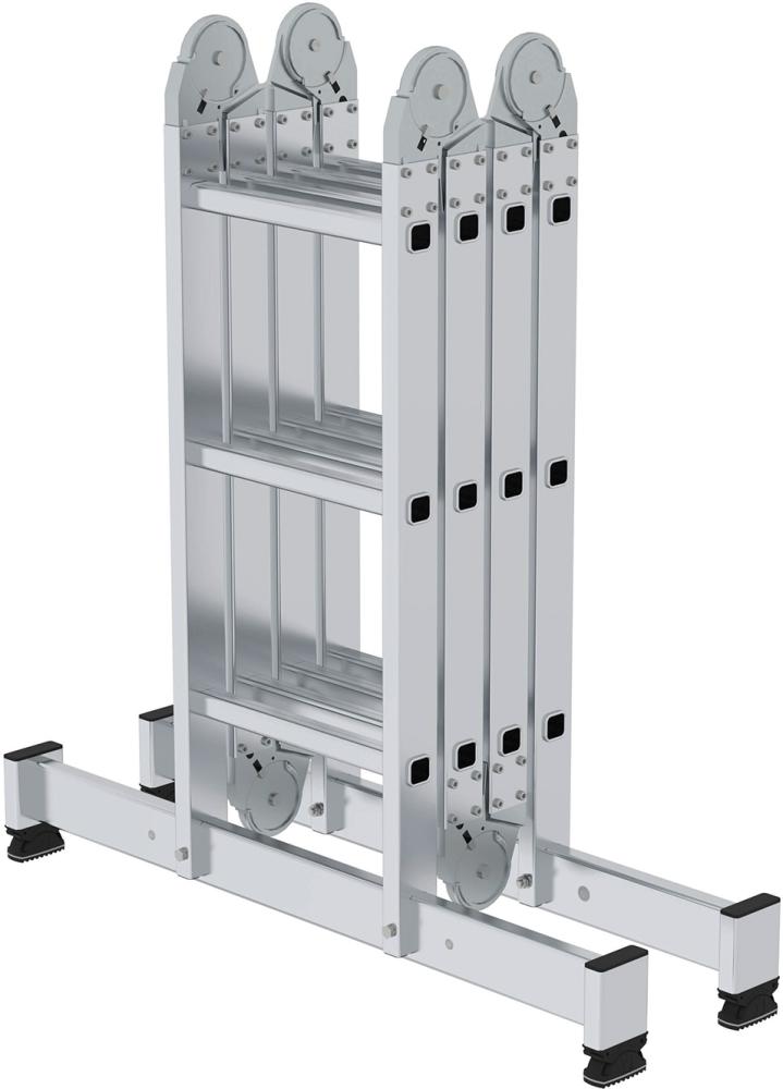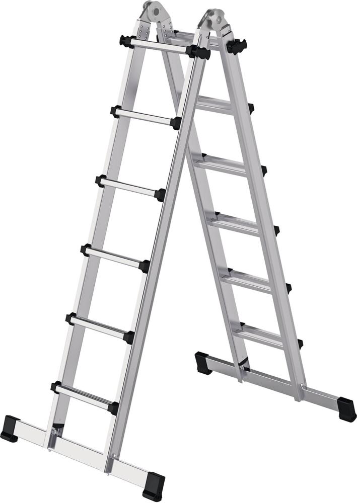 Vielzweckleiter 4-teilig mit nivello®-Traverse Die 4-teilige Vielzweckleiter ist universell als Anlege- und Stehleiter sowie als Arbeitsbühne einsetzbar. • Extrasicherer Aufstieg nach Norm • Bei Einsatz als Arbeitsbühne: Belag und Geländer verwenden (siehe Zubehör) • Einsatzsicherheit: durch 6 automatisch verriegelnde Stahlscharniere • Traglast: 150 kg in jeder Gebrauchsstellung • Sprossenabstand: 280 mm • Mit zwei breiten nivello®-Traversen und beidseitig rutschsicheren nivello®-Leiterschuhen für extrasicheren Stand und hohe Arbeitssicherheit • Geprüfte Sicherheit: entsprechen der Leiterklasse „beruflicher Gebrauch“ gemäß DIN EN 131-2:2017 Hinweis: Nach TRBS 2121 Teil 2 wird zum Arbeiten auf dieser Leiter ein passendes Zubehör benötigt. Nach DIN EN 131-4 muss bei einer Vielzweckleiter, die als Arbeitsbühne verwendet werden kann, eine Plattform mitbestellt werden (z. B. Aluminium Riffelblech). Hersteller: Günzburger Steigtechnik Munk GmbH, Rudolf-Diesel-Str.23, 89312 Günzburg, DE, +498221361601, steigtechnik@steigtechnik.de
