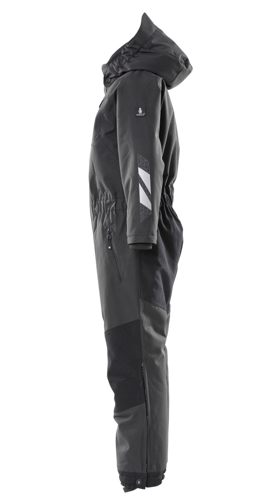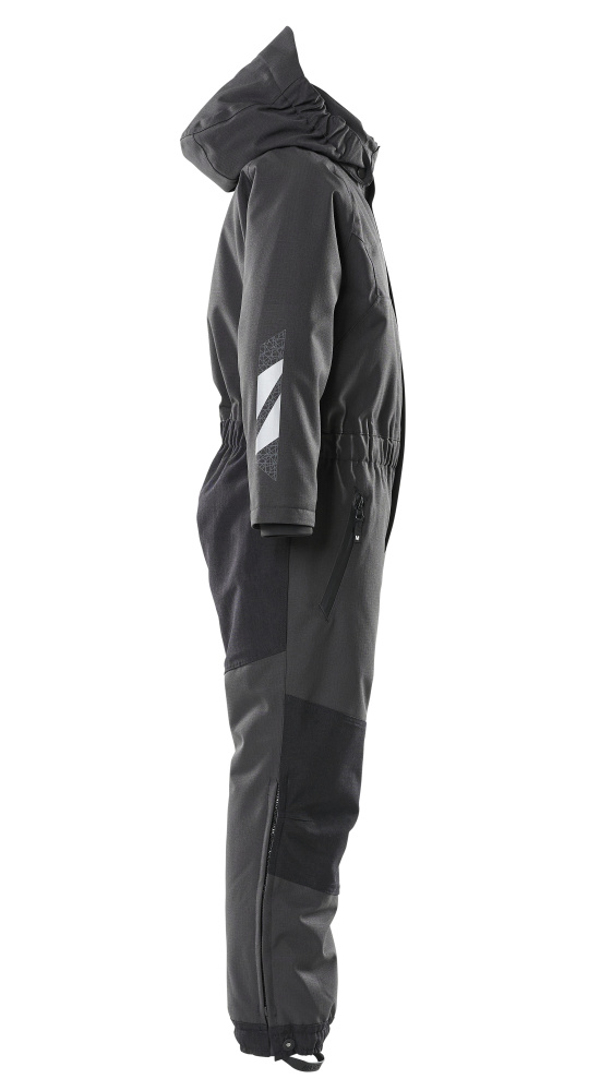 Atmungsaktiv, wind- und wasserdicht. Nähte sind verklebt. Mit CLIMASCOT® Lightweight Insulation. Abnehmbare, gefütterte Kapuze mit Elastikeinsatz. Verschluss mit Reißverschluss und inwendiger Wetterschutzleiste. Gummizug in der Taille. Vordertaschen mit Reißverschluss. Rippenbündchen (verdeckt unter der Wetterschutzleiste) an den Handgelenken. CORDURA®-Gewebe Verstärkungen an verschiedenen Teilen des Produktes. Reißverschluss an der Beinaußenseite. Stiefelschlaufen. Mit Druck und Reflexen. OEKO-TEX® STANDARD 100