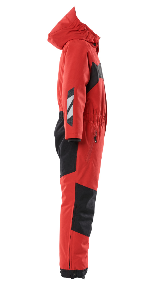 Atmungsaktiv, wind- und wasserdicht. Nähte sind verklebt. Mit CLIMASCOT® Lightweight Insulation. Abnehmbare, gefütterte Kapuze mit Elastikeinsatz. Verschluss mit Reißverschluss und inwendiger Wetterschutzleiste. Gummizug in der Taille. Vordertaschen mit Reißverschluss. Rippenbündchen (verdeckt unter der Wetterschutzleiste) an den Handgelenken. CORDURA®-Gewebe Verstärkungen an verschiedenen Teilen des Produktes. Reißverschluss an der Beinaußenseite. Stiefelschlaufen. Mit Druck und Reflexen. OEKO-TEX® STANDARD 100