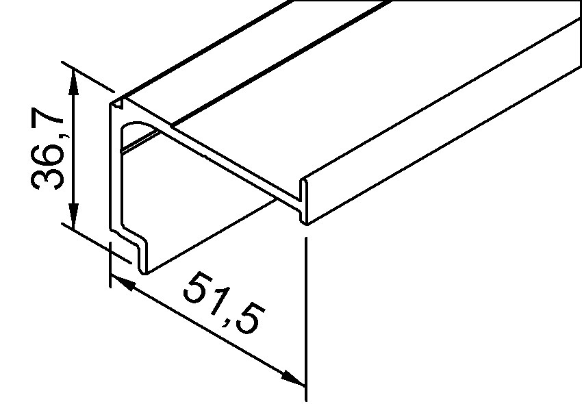 Eigenschaften "OT-Distanzprofil,L 6000mm, seitlich gebohrt, Aluminium, edelstahloptik eloxiert"