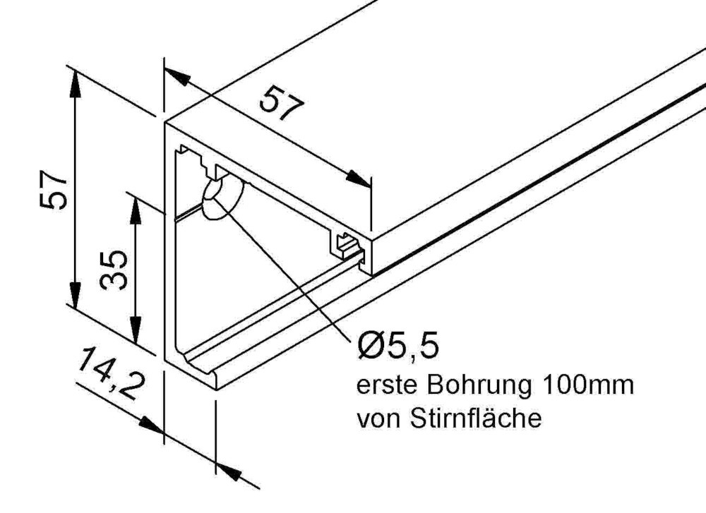 Produktinformationen "OT-Laufprofil 6000mm, GT-L, mit Seitenteil, edelstahloptik"