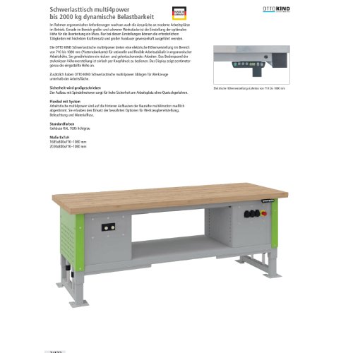 Eigenschaften "OTTO KIND Schwerlasttisch m4p 2000 HxBxT: 710-1080x2030x800"