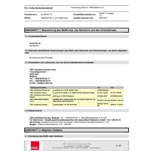 Hersteller: CRC Industries Europe, Suedring 9, 76473 Iffezheim, DE, +4972293030, info-DE@crcind.com